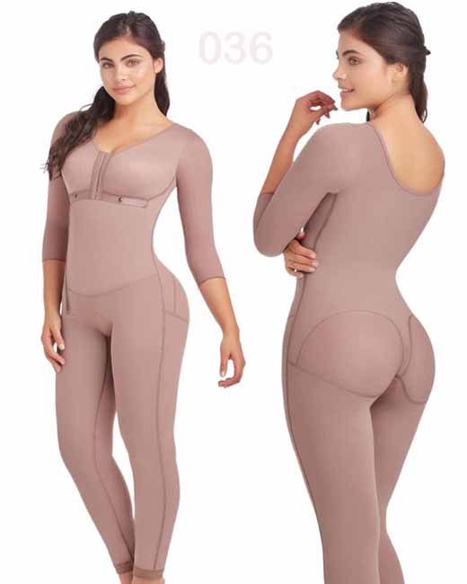 The girdles with Bra and sleeves, design allows a comfortable recovery after surgical procedures, has a fabric material that exerts pressure where inflammation occurs more, inside fabric has a soft structure that provides comfort and freshness. Allows a better patient recovery, helping skin to re-attach to the muscular tissue, reduces significantly the liquid retentions, pain and flaccidity and offer more mobility and safety's patient. The girdles are design especially for cosmetic surgery, several references, sizes and especial measures are made. COLOR: