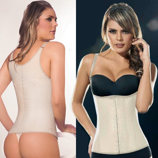 Descripción: Chaleco de latex recubierta en algodon. Reduc 10 cm de cintura. Corrigue la postura. Pierda medidas por sudaracion. Resalta el busto, Controla Cintura, Espalda y abdomen. Doble posicion de ganchos para mayor funsion. Muchas mujeres lo usan diaramente para tonificar y reducir cm's de su cintura. Tirantes ajustables. Colores: Nude y negro