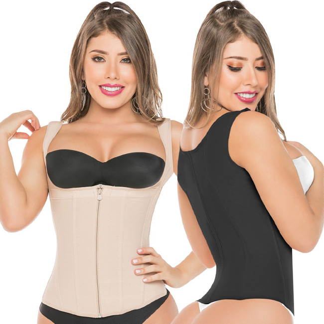 Description: Vest control for women. Made with high-compressión powernet, Topless, Low-cut back, Wide shoulder straps. Shaping girdle: Abdomen control. Recommended: Daily use, post-partum and shaping girdle. Frontal zipper and inside eyelet hooks closure. Reduces and maintains the firmness on your abdomen. Many women wear this garment on a daily basis to tone and instantly reduce cm's on their waist, hips and legs while in use |